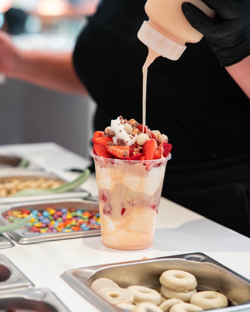 espolvoreados + 2 siropes + 2 toppings + 1 bola de helado